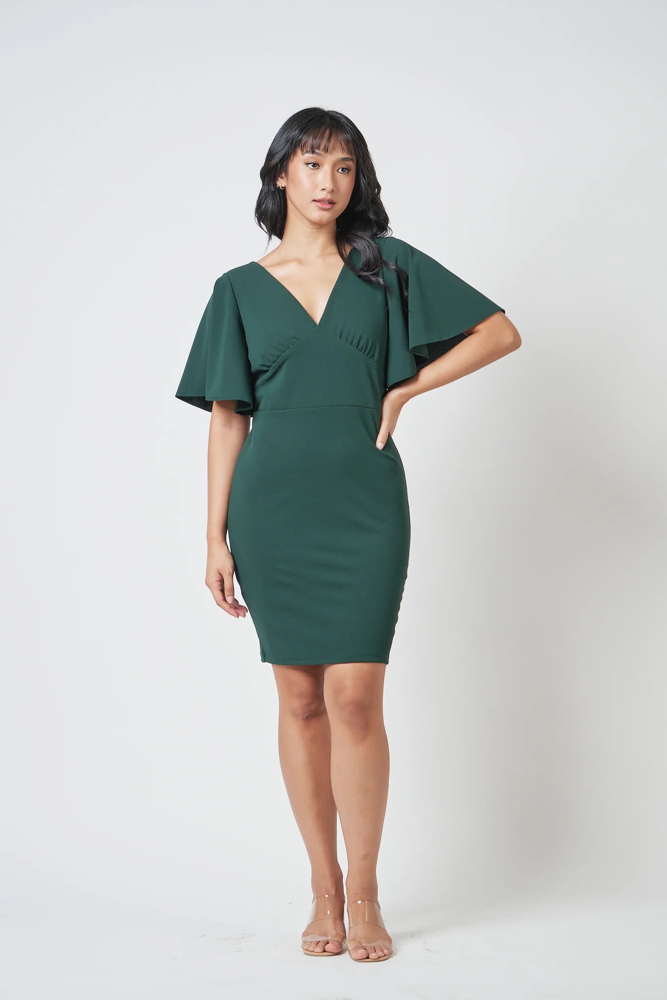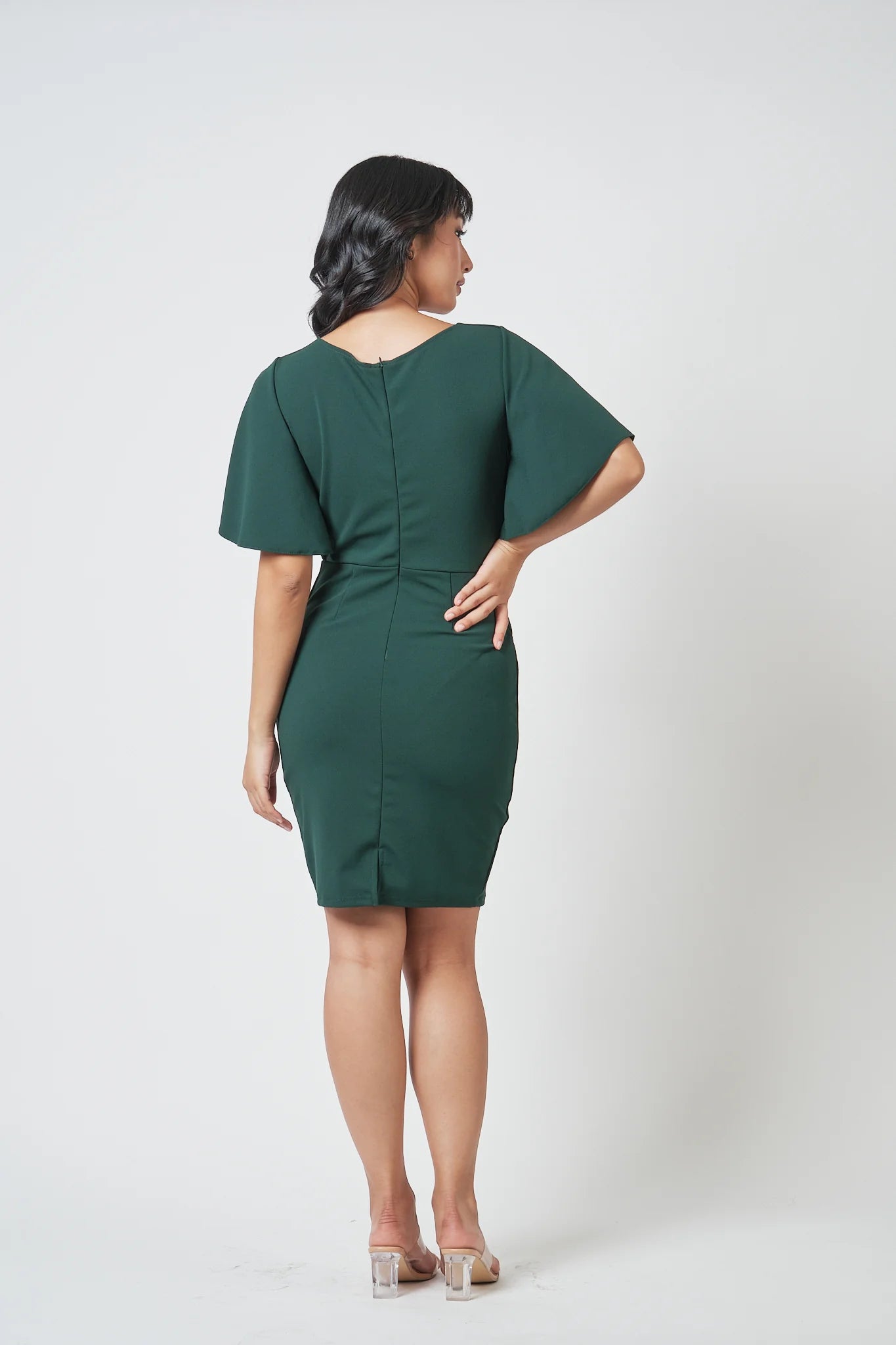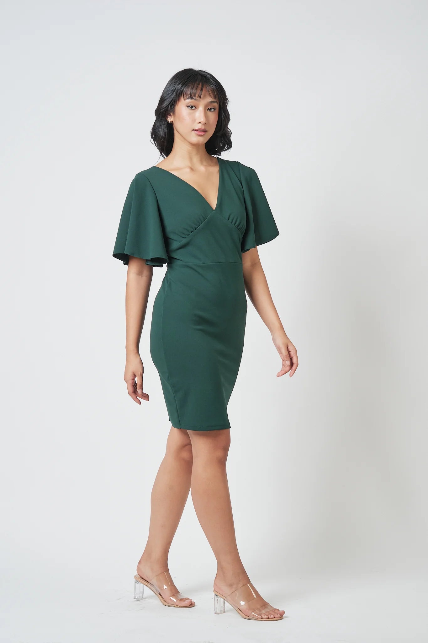 PENCIL CUT DRESS WITH FLOUNCE SLEEVES
