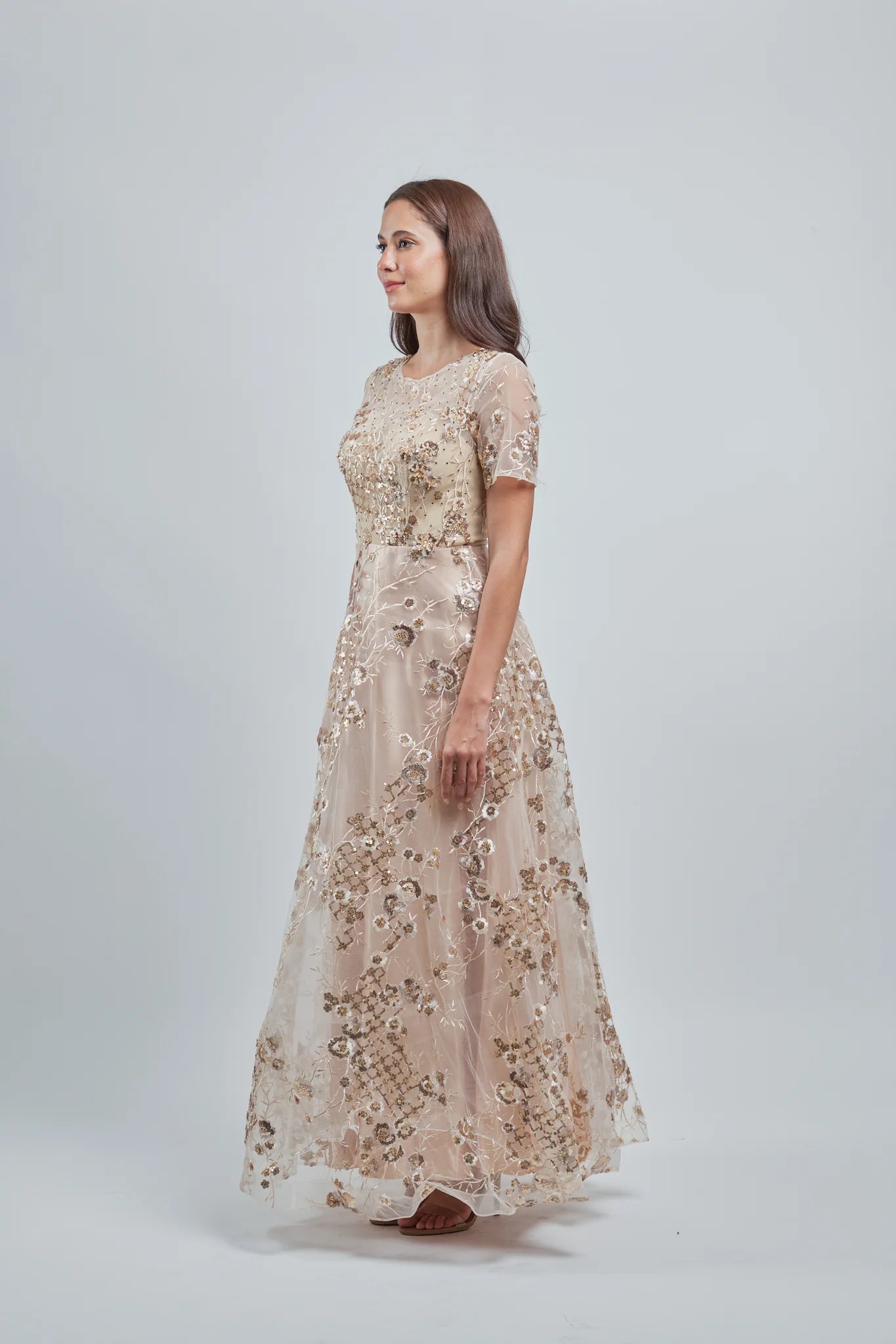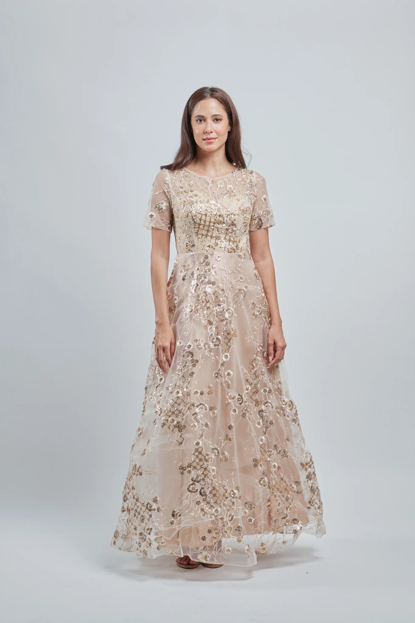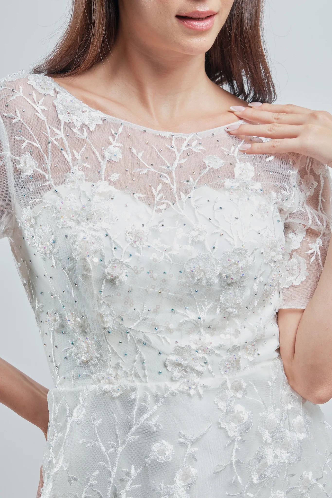 SHORT SLEEVES FULLY BEADED LACE GOWN
