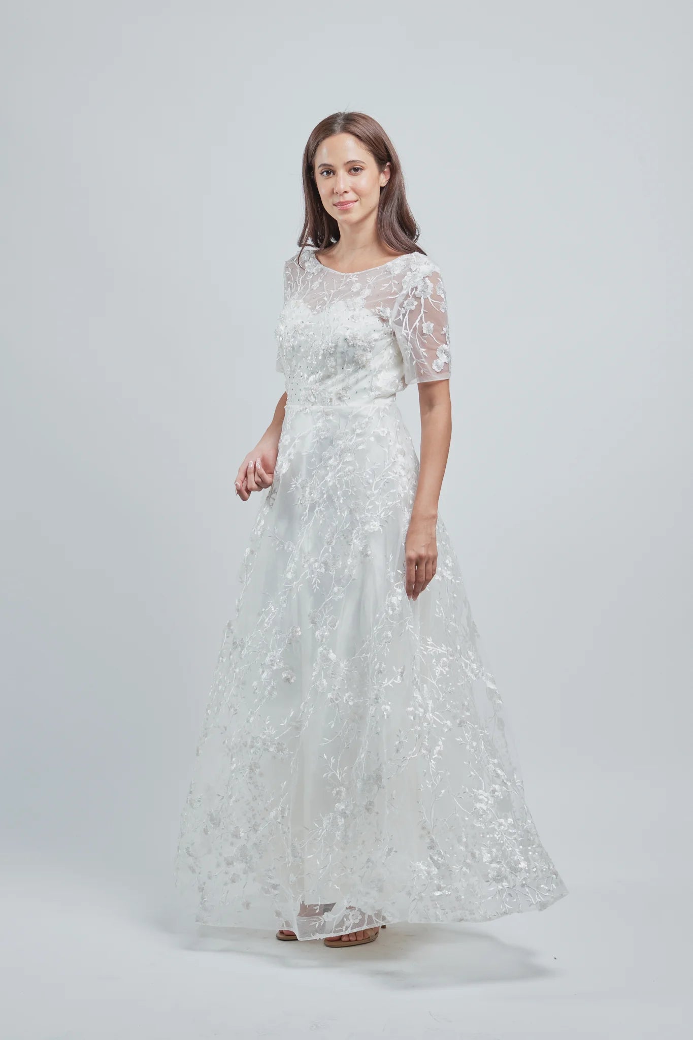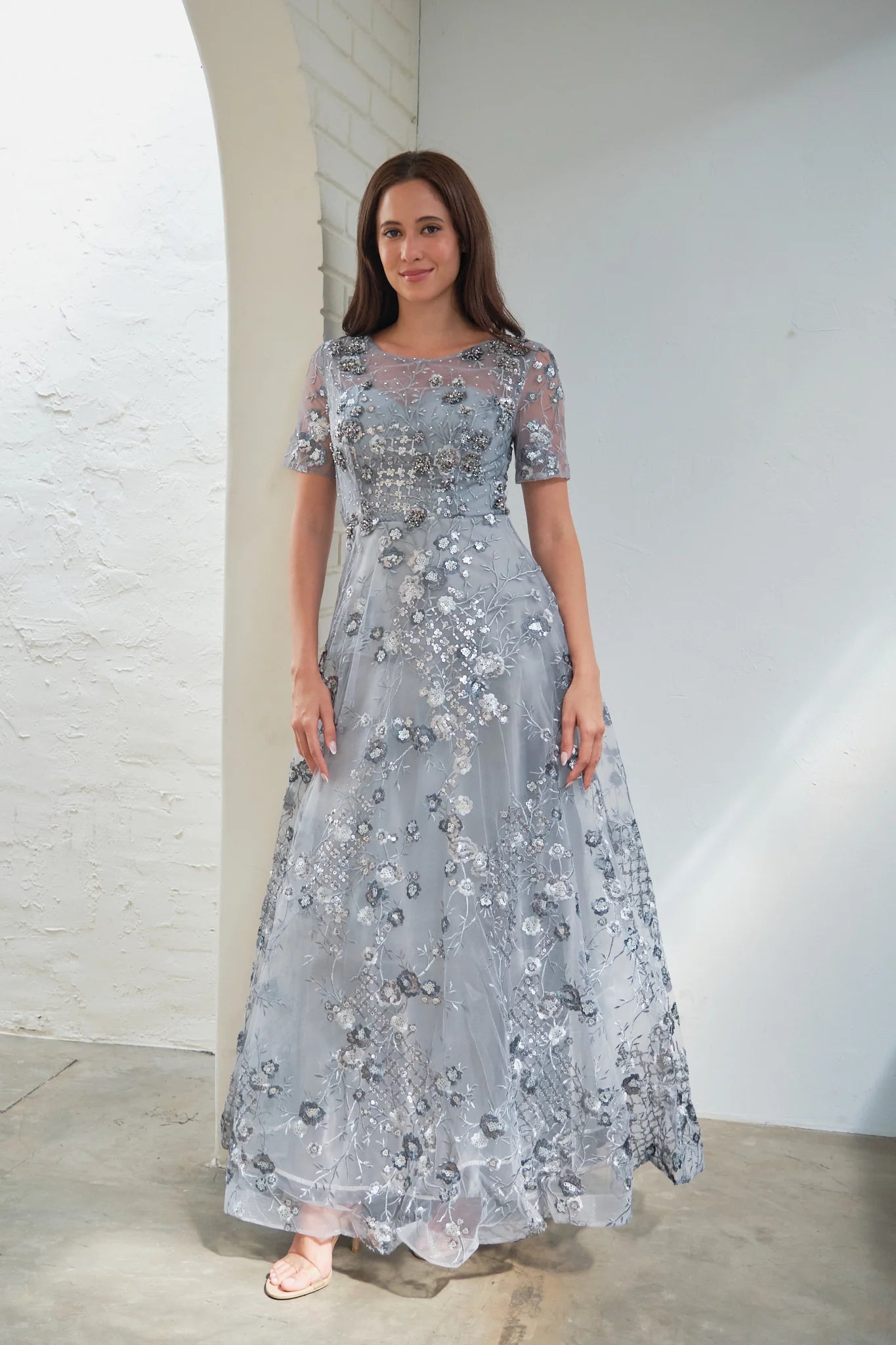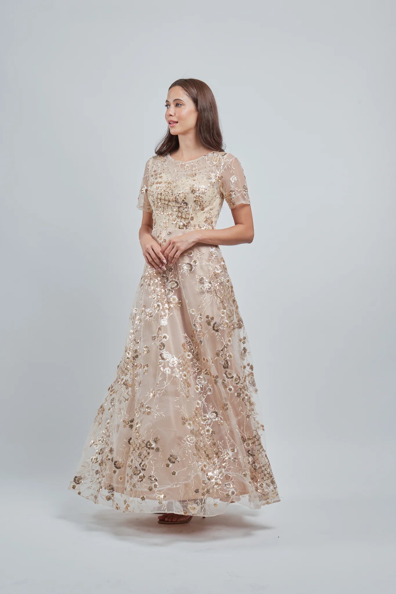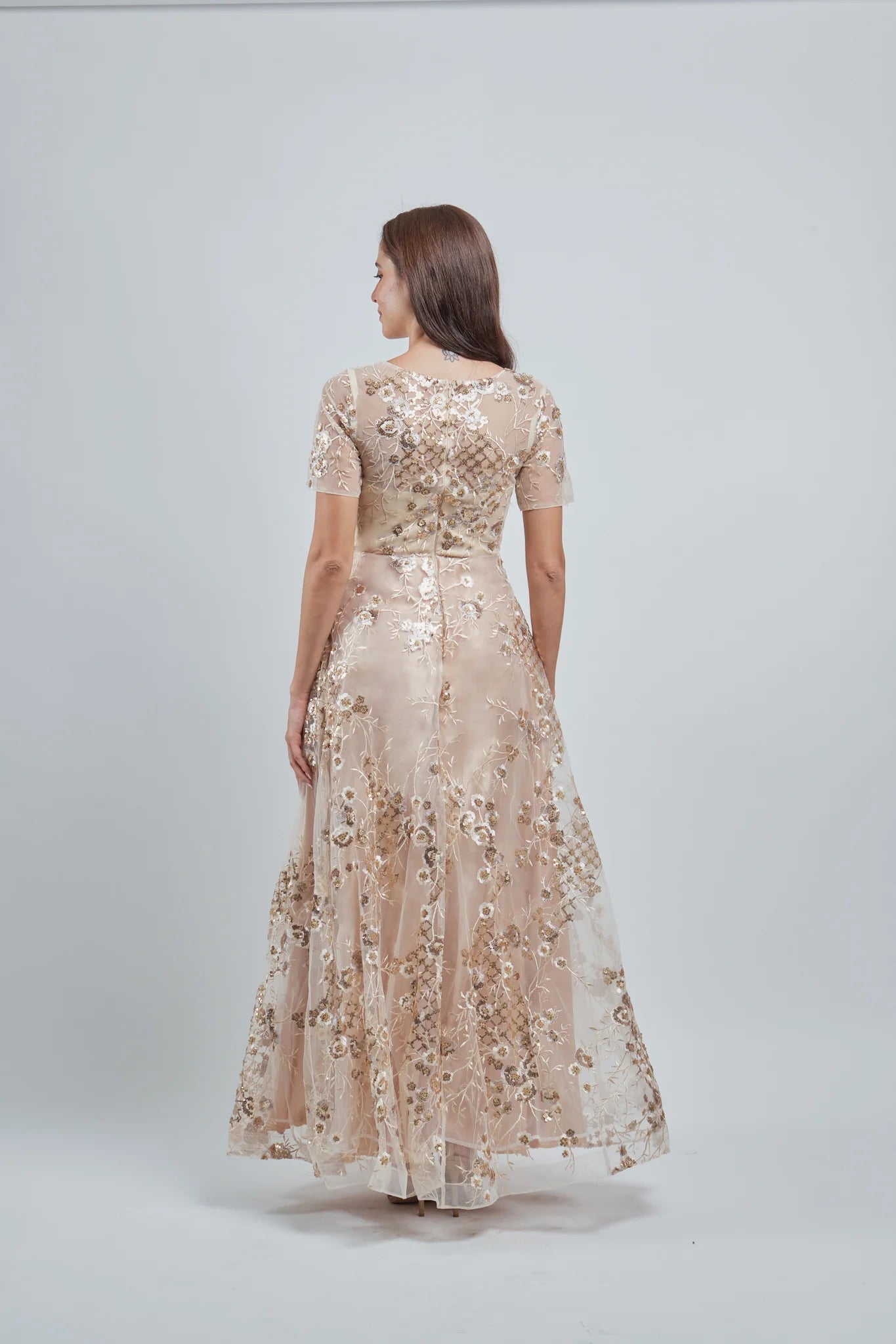 SHORT SLEEVES FULLY BEADED LACE GOWN