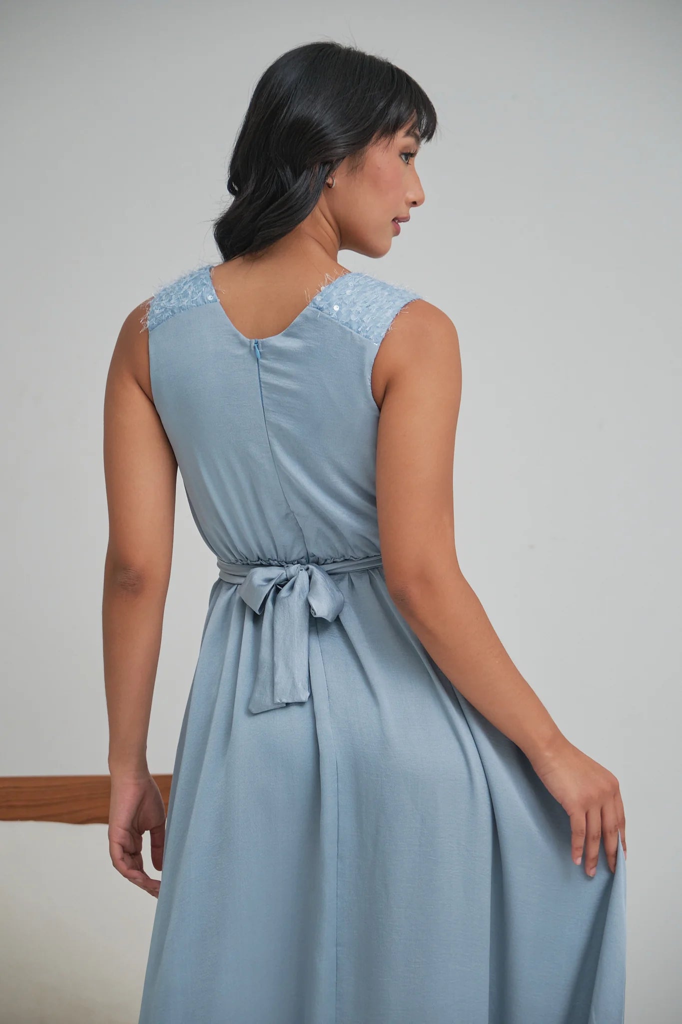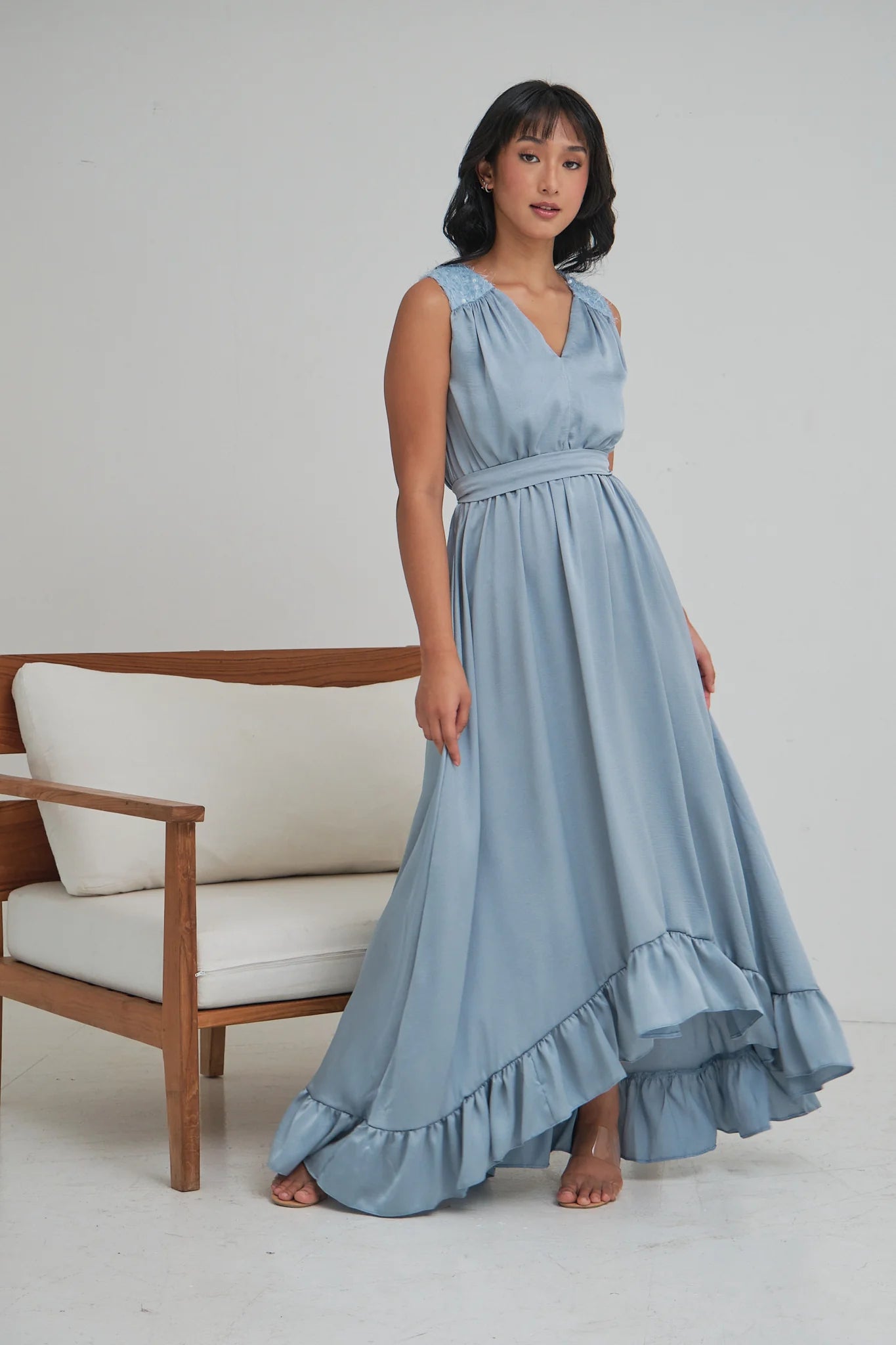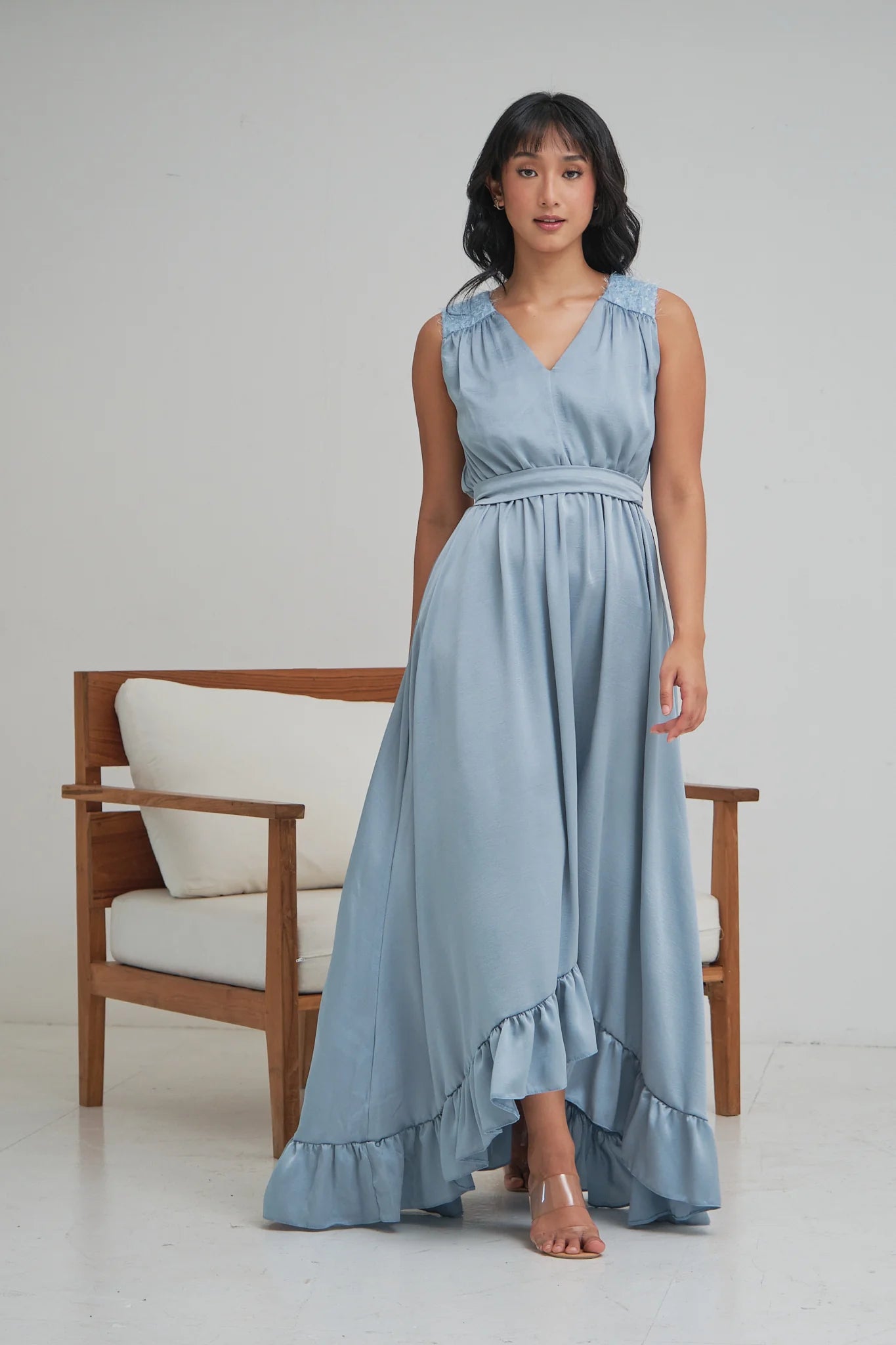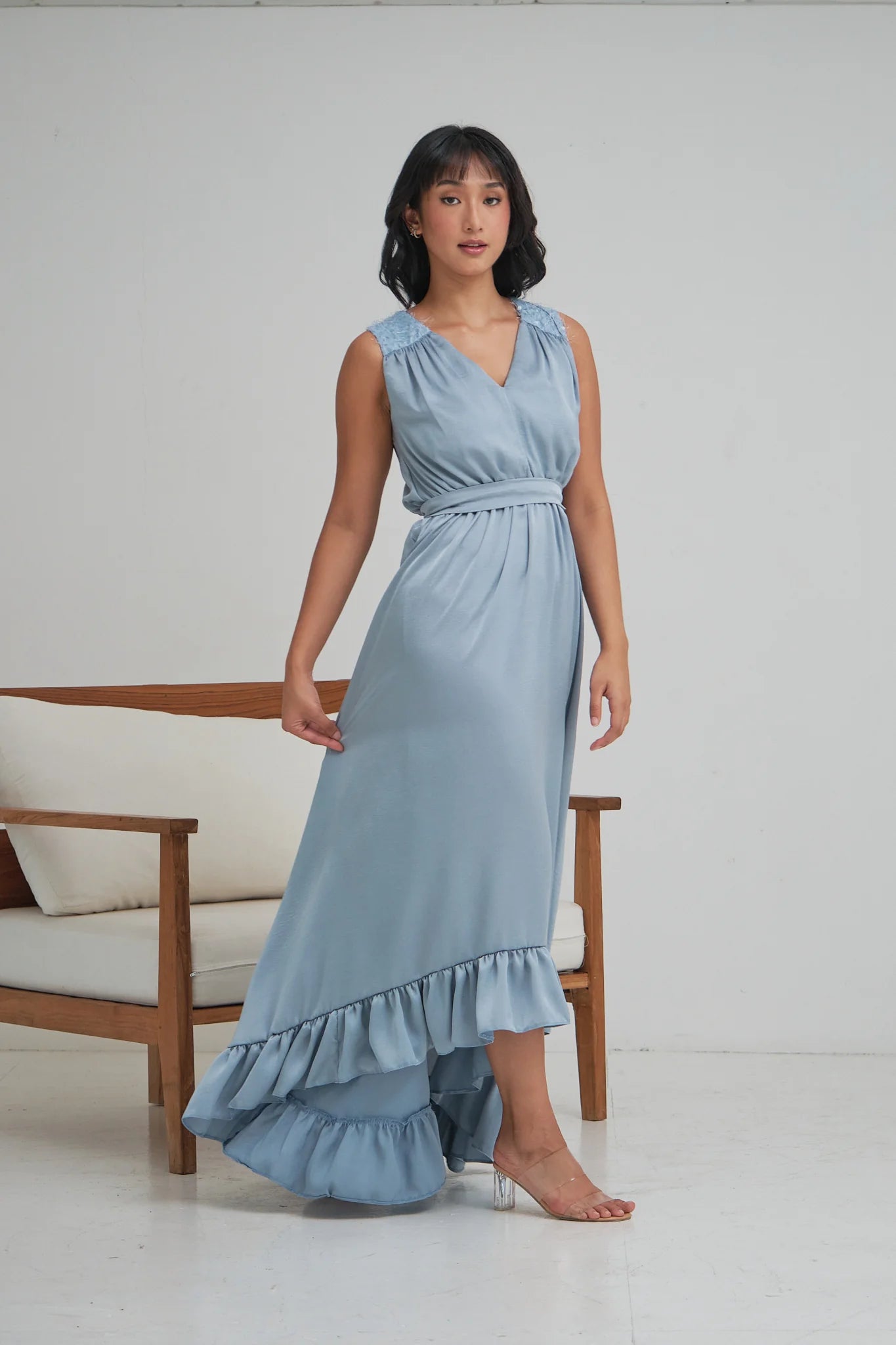 HANNAH SLEEVELESS HIGH LOW GOWN WITH SASH BELT