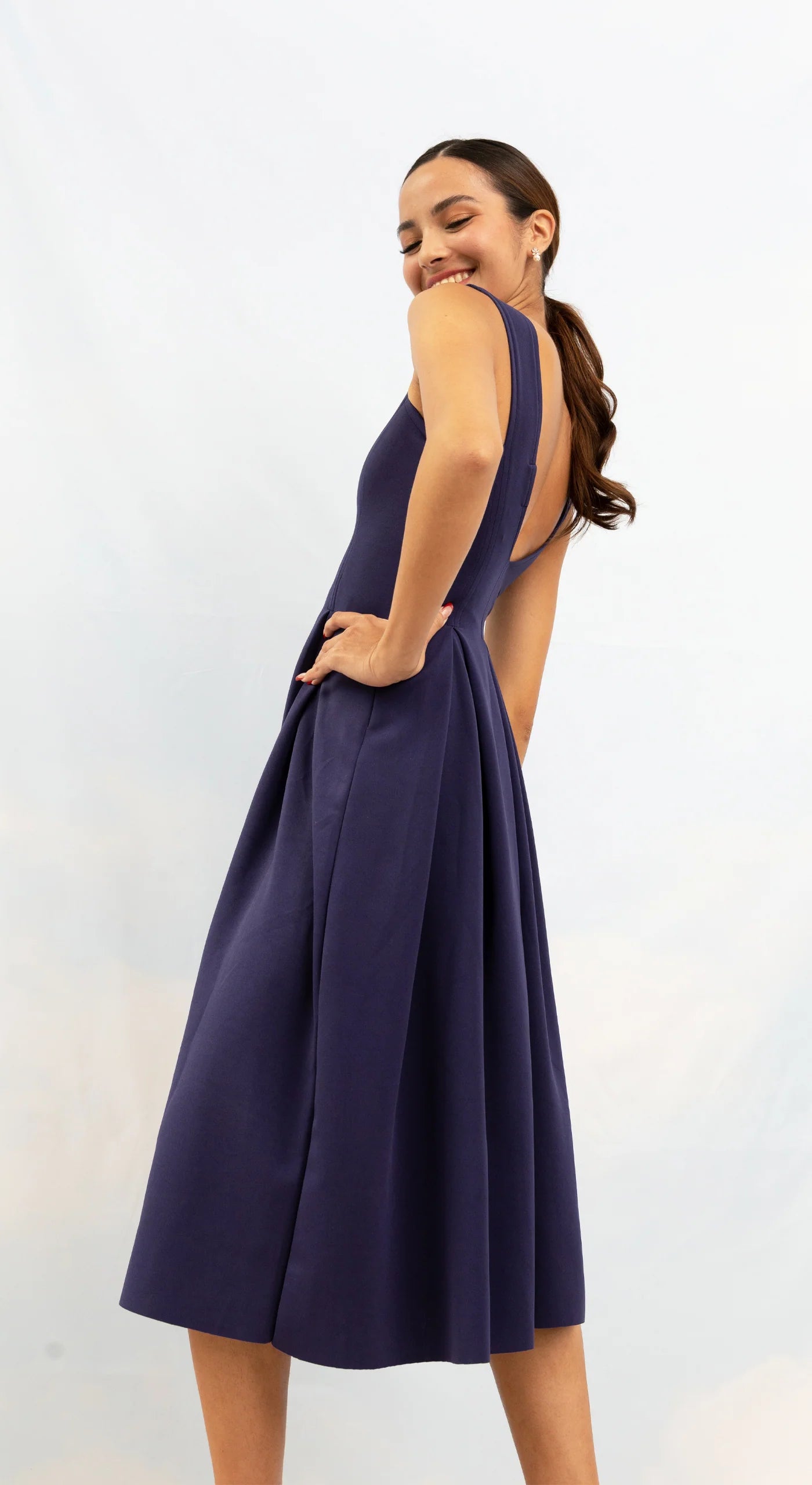 V-NECK A LINE MIDI DRESS WITH DEEP V-NECK AT THE BACK