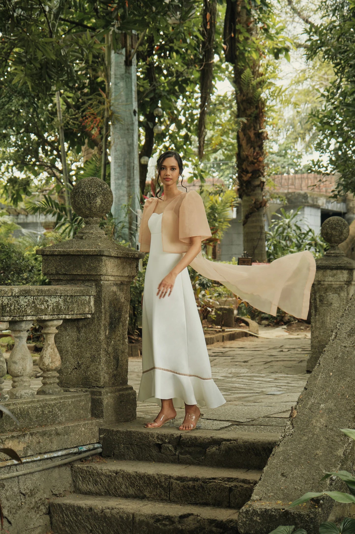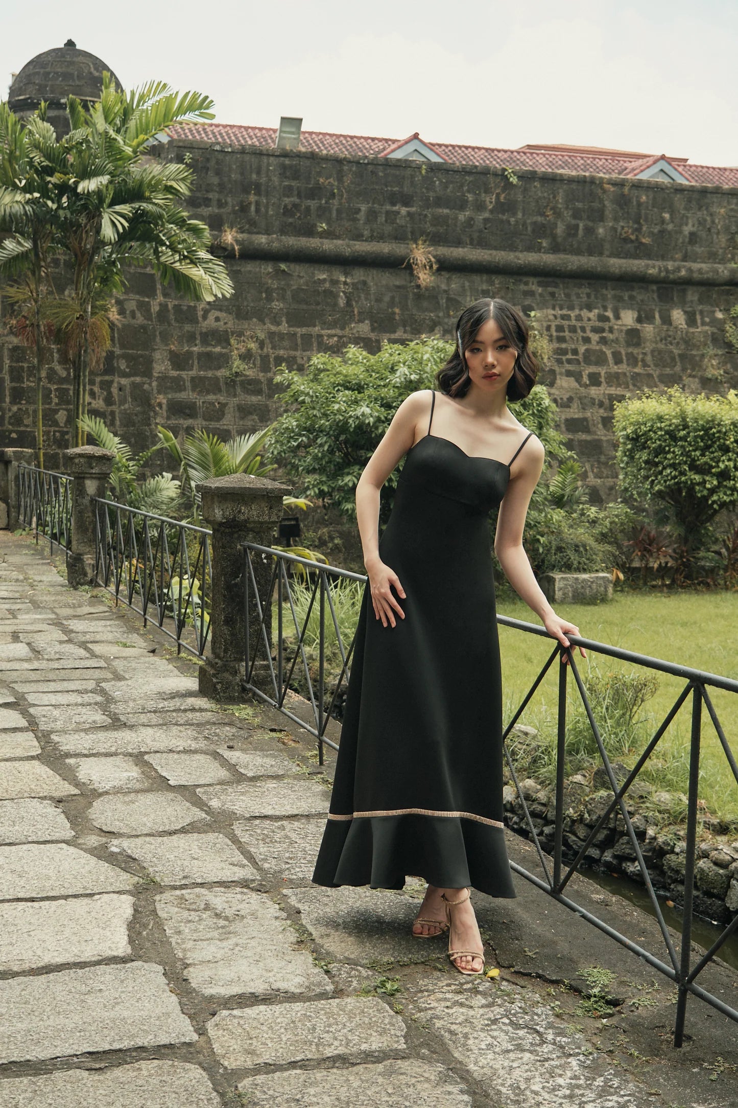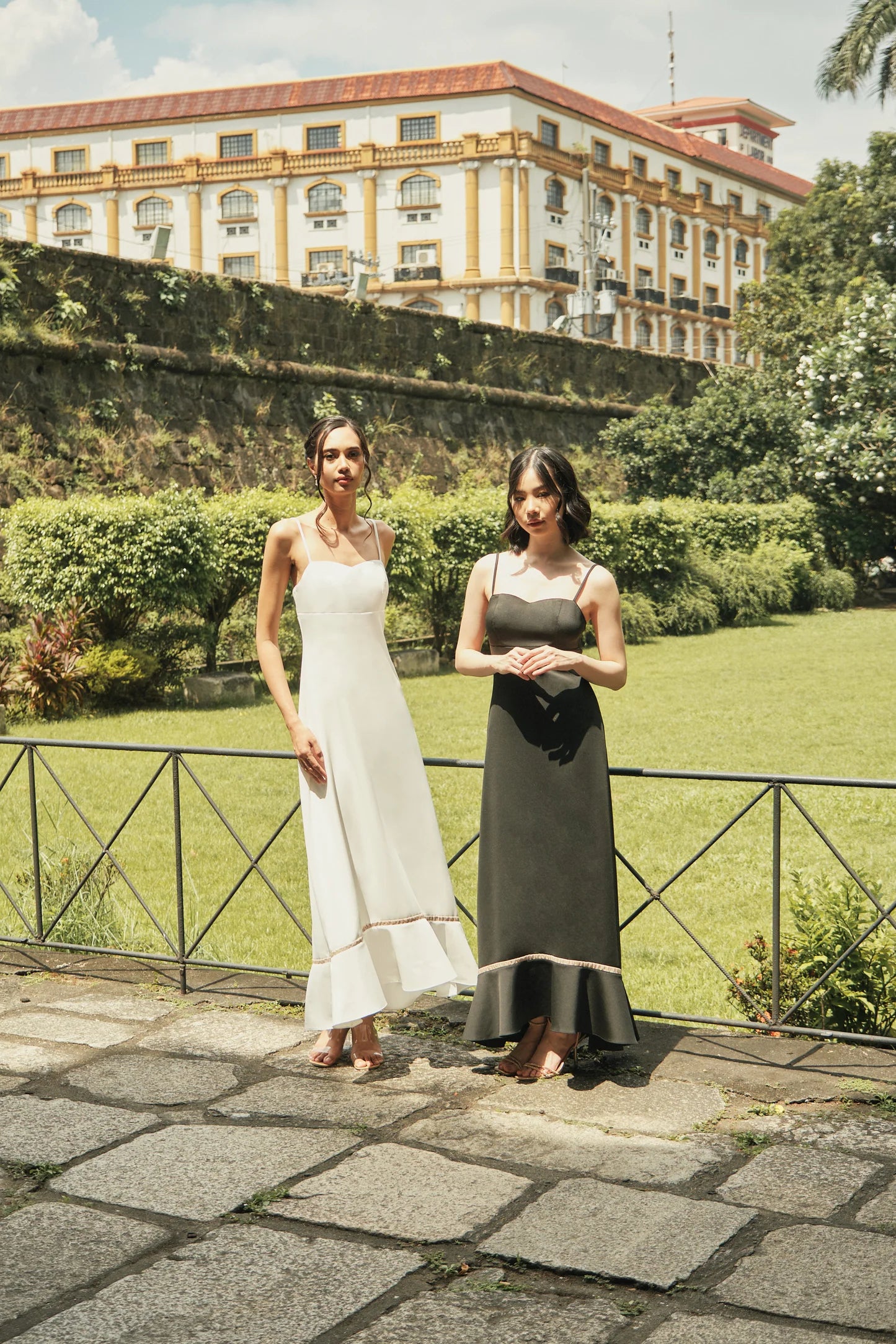 SPAGHETTI STRAP LONG DRESS WITH CUSTOM WEAVE DETAIL