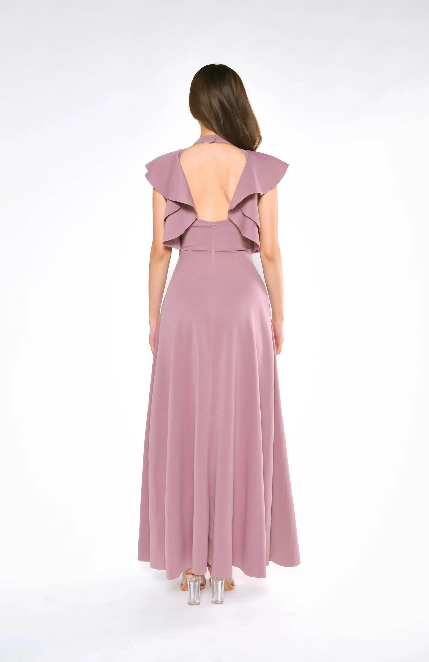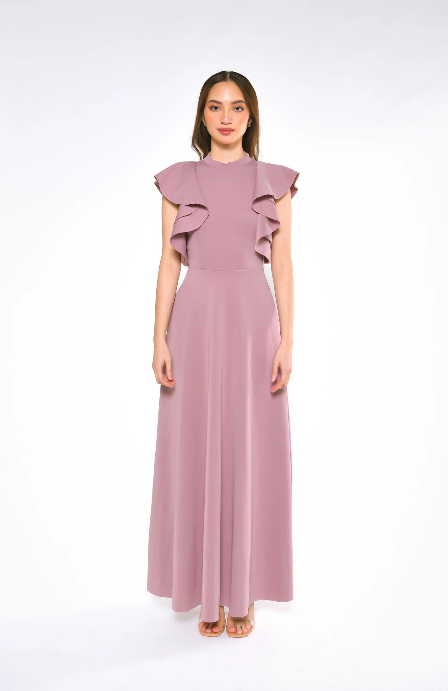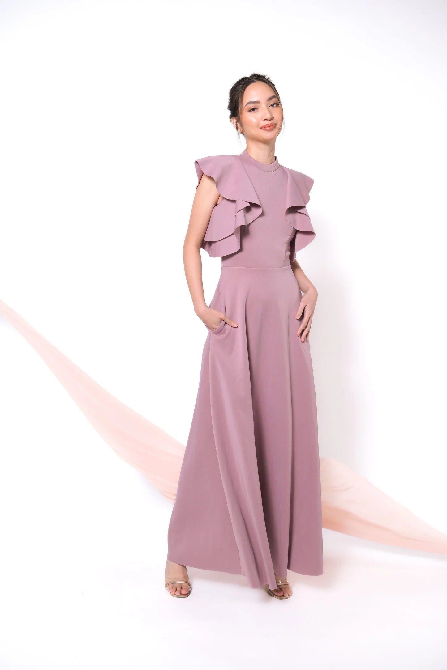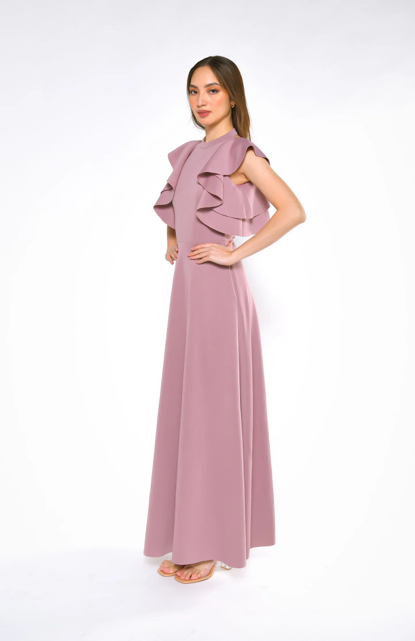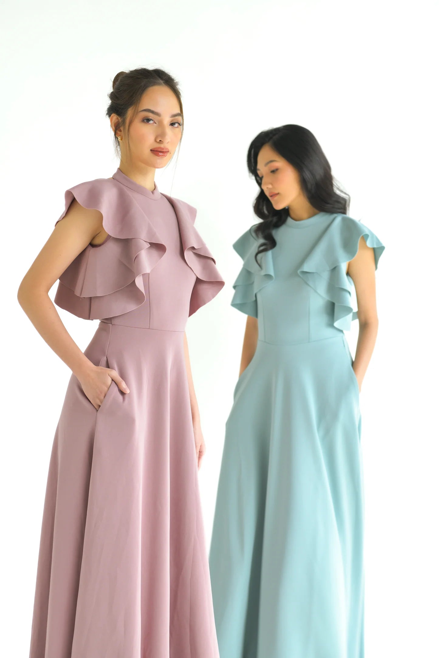 Double Layer Flounce Sleeved Semi Biased Gown with Pocket