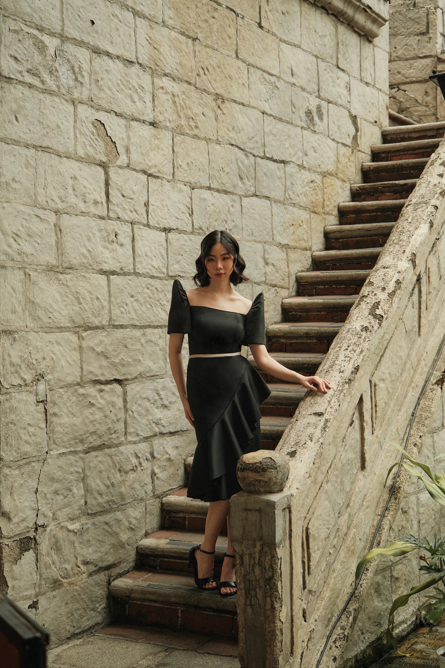 TERNO SLEEVE FILIPINIANA DRESS WITH FLOUNCE ON SKIRT & CUSTOM LANGKIT WEAVE FROM MARAWI CITY
